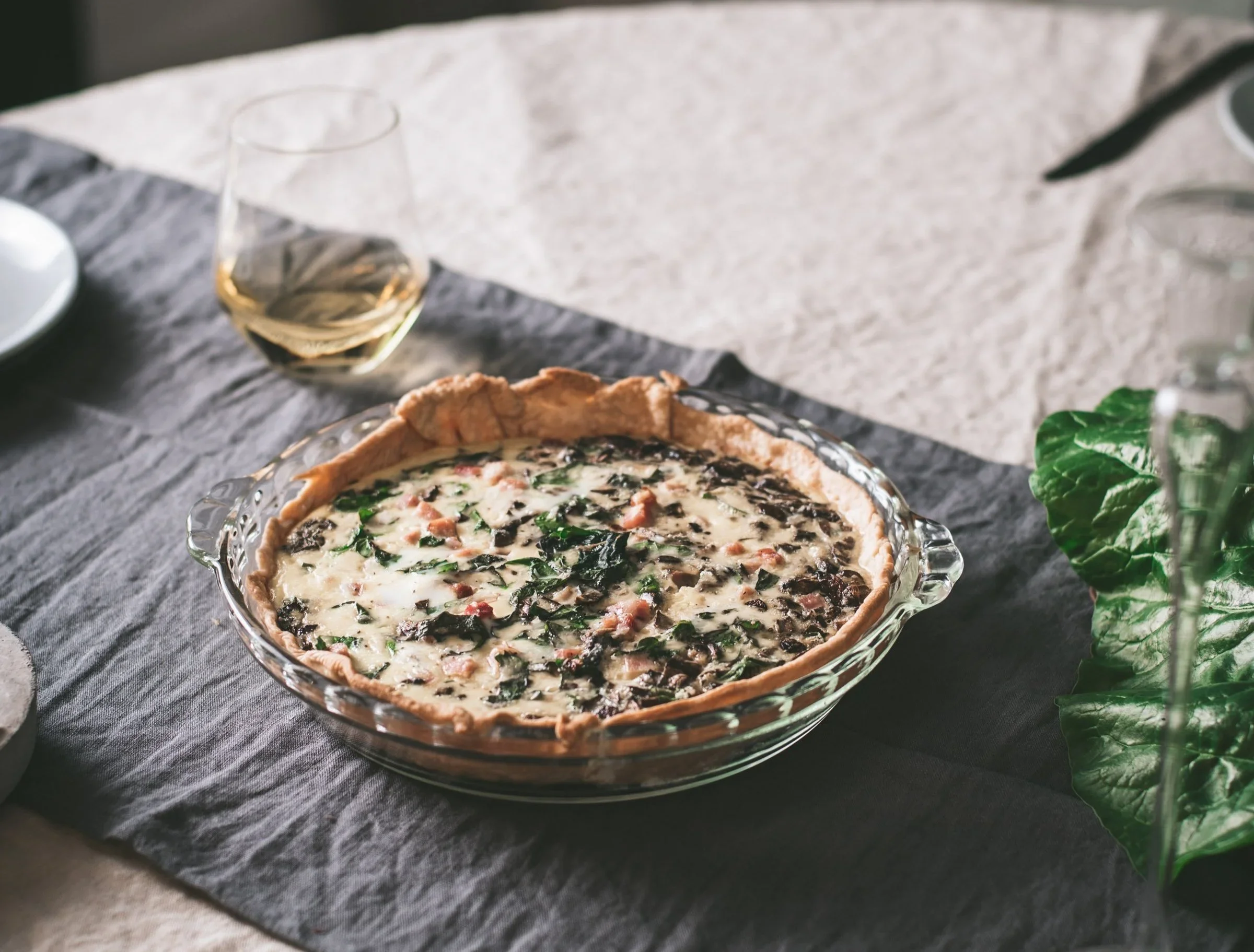 Pre-make your pie dough the night before or take out your frozen crust an hour or two before partially baking the crust and adding quiche ingredients. You can also make your partially baked crust up to 2 days in advance