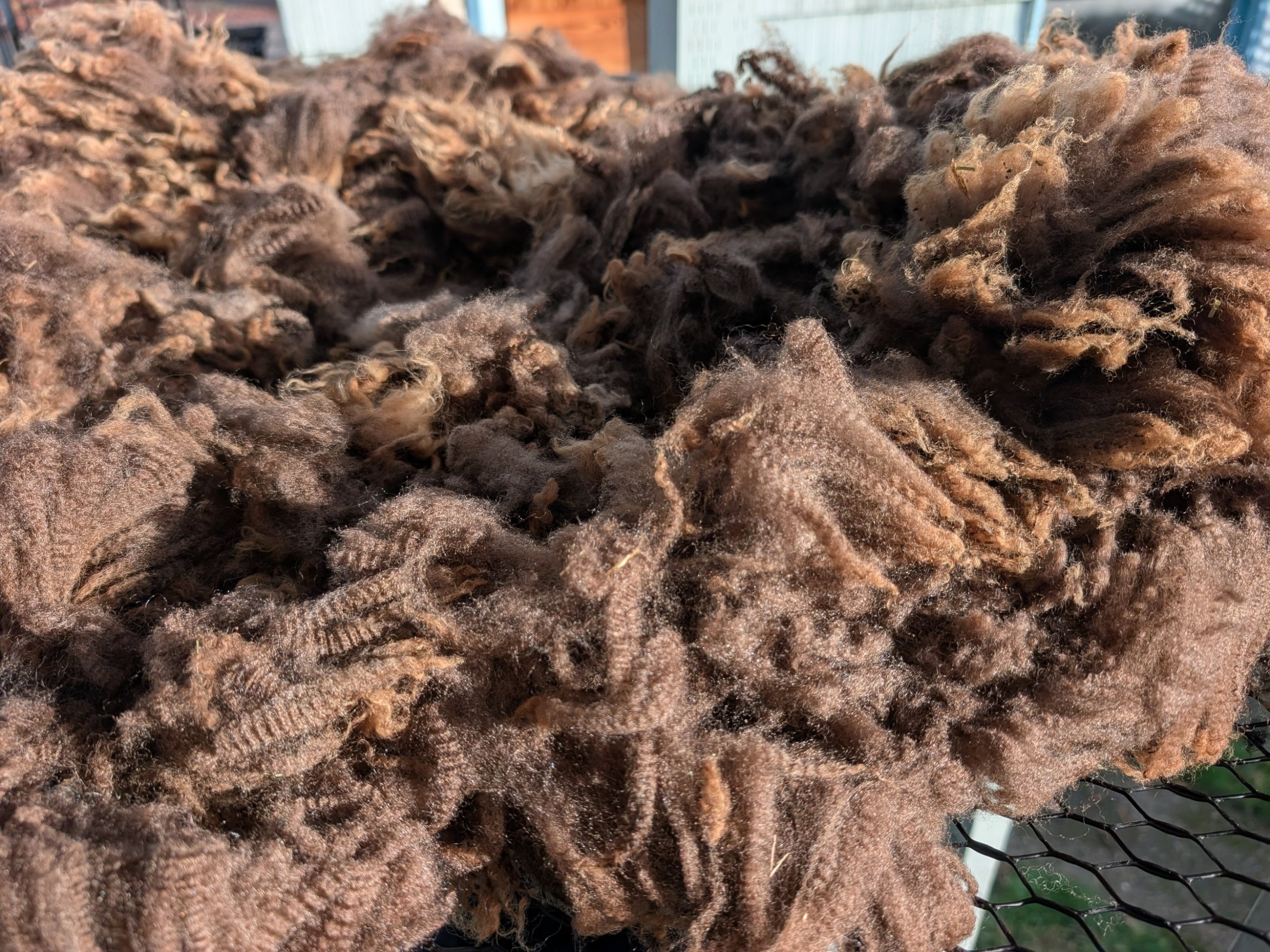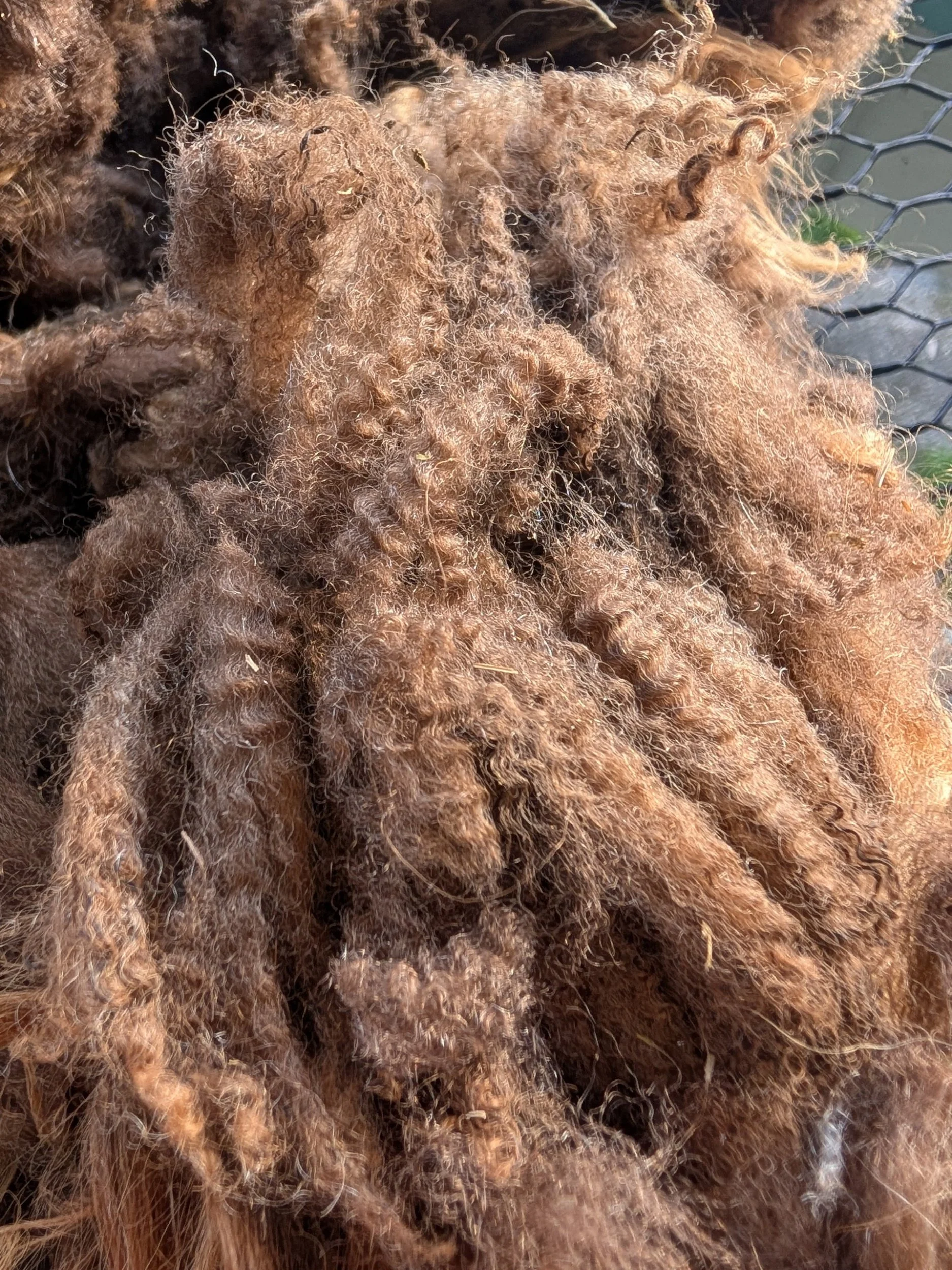 This is a beautiful, naturally colored Finnsheep wool roving from Chester, our brown badger piebald ram brought to the farm in Spring of 2024. This roving, like all our roving, is from a single animal. Chester blended into a lovely oatmeal colored roving. Enjoy 4oz of our naturally colored lamb’s wool shorn in 2024 now available in 2025. Hedgerow Willows Flock & Farm Finnsheep wool is raised in Ferndale, Wa.