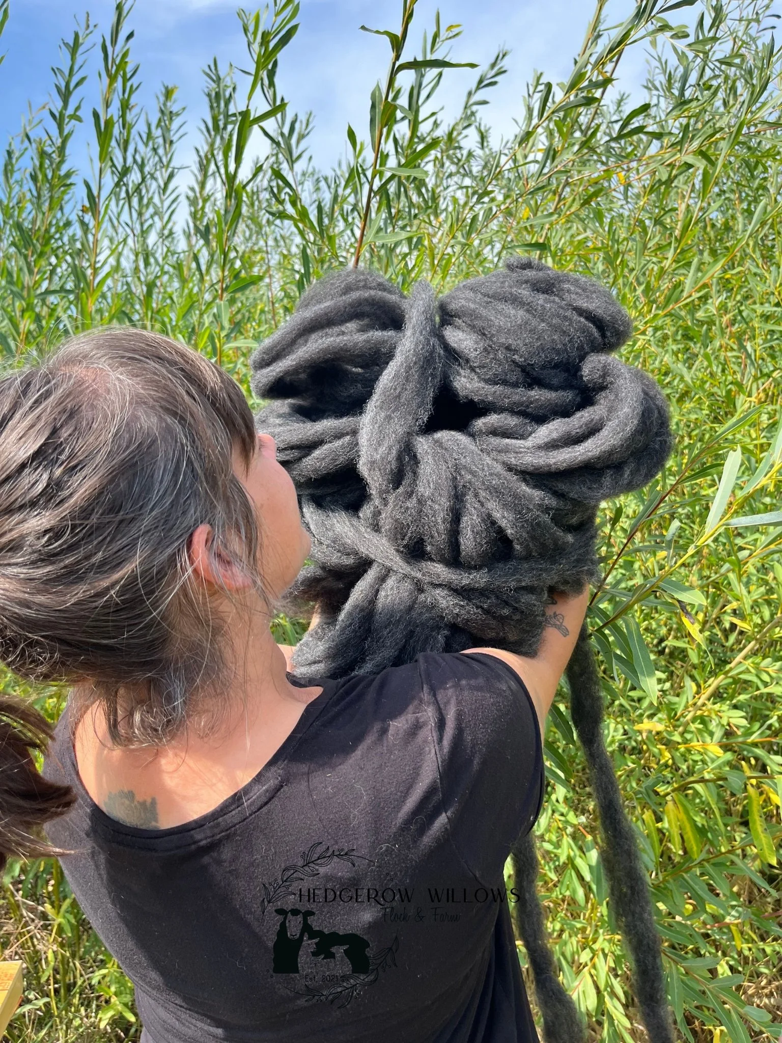 Your purchase 100% covers care for the flock and the farmer who cares for them. We love these sheep. Your purchase supports the sheep themselves, the lady shearer, and the woman-owned mill that prepped this roving for your handspinning pleasure. Thank you for that. Sheep, shearers & mills are dwindling in this country. We are becoming part of the story that keeps small farms alive and you are doing a large part by purchasing from us instead of a larger corporation that is only profit driven. Small farmers invest so much of themselves but, that is another story. We appreciate you being part of this farm’s tale.